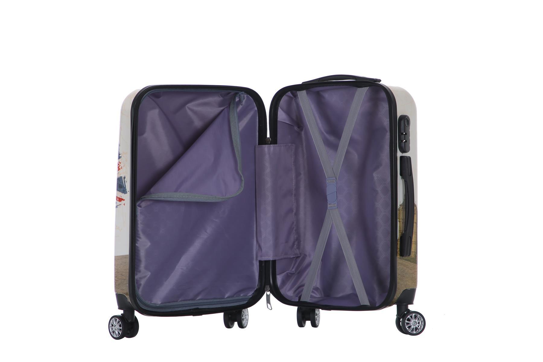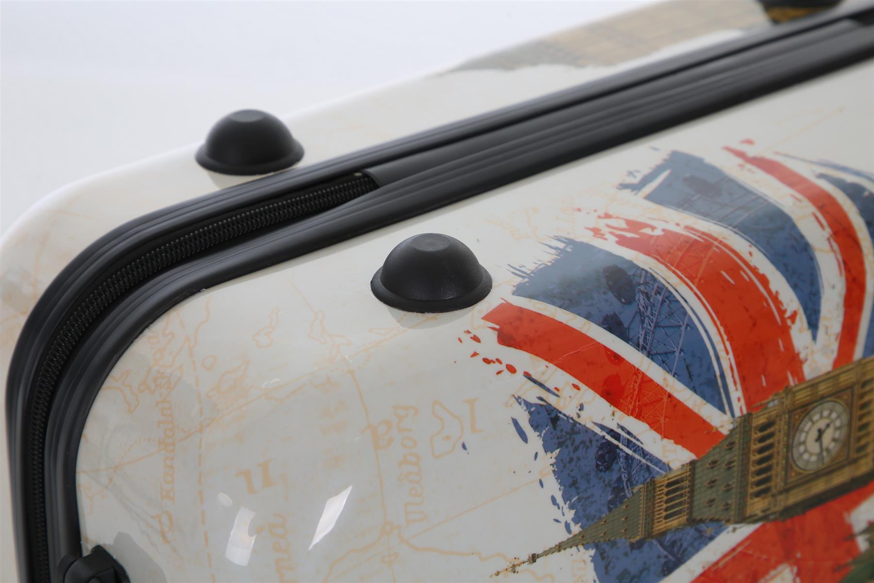 Set of 3 Lightweight Luggage Suitcase London Eye design Made from strong lightweight ABS material which makes it sturdy yet super-easy to travel with its featherweight hard shell. Hard Shell 4 Wheel Trolley Case is a perfect travel partner.