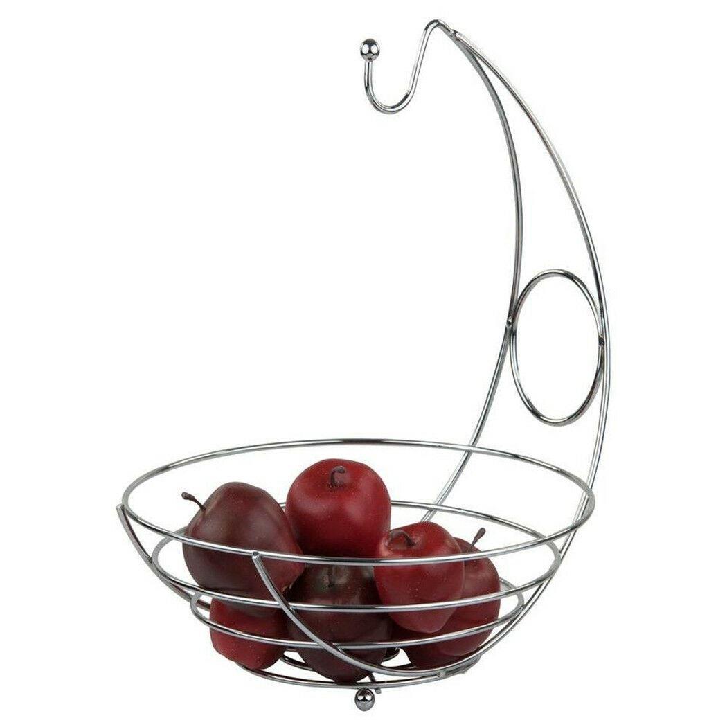 Decorative bowl for kitchen tables and counter tops. High-quality modern style stainless steel fruit and vegetable basket shelf bowl with banana hanger hook