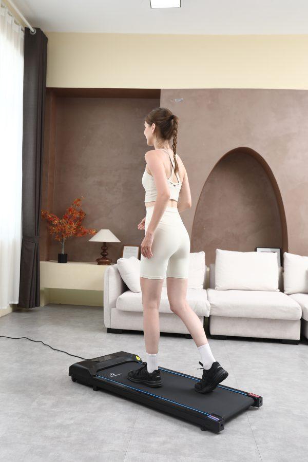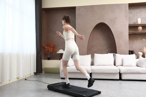 Our Treadmill features an LED display that tracks your speed, time, distance, and calories burned. Before its first use, it’s recommended to add the included special lubricating oil and to power on the treadmill for 20-30 minutes without stepping on it to ensure proper stabilisation. The treadmill should not be used on carpet.